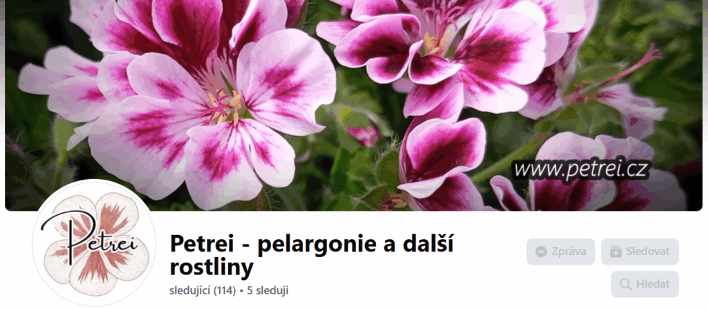 Dovolte abych vás pozval i na profil na Facebooku. Budu velice rád, pokud mě budete sledovat a díky tomu budete mít okamžitě přístup k aktuálním informacím. Třeba o plánovaných výstavách nebo dalších nabídkách nejen pelargonií. Nebo se třeba jen tak aktuálně pokochat fotografií rostlin které mi třeba právě kvetou. Prostě zde najdete vše co se aktuálně děje při pěstování nebo nového šlechtění PETREI. Přidejte se k nám a už vám nic neuteče.
